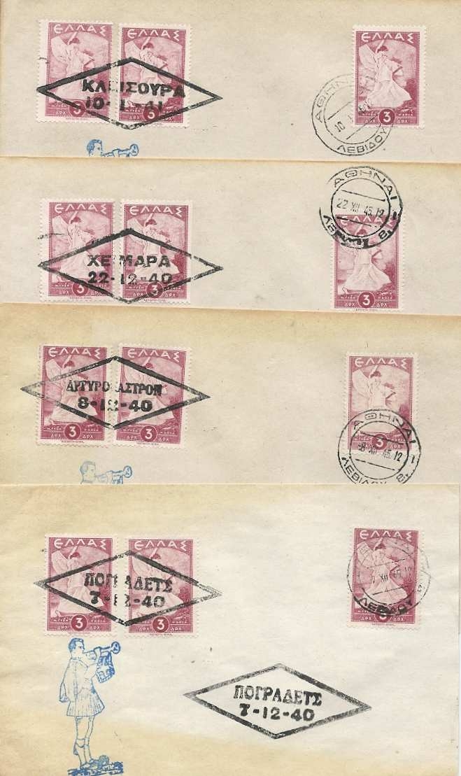 Lot1313 - ΕΛΛΑΔΑ 1938 οκτώ (8) φάκελλοι με αναμνηστικές σφραγίδες από πόλεις της Βορείου Ηπείρου - Αλβανικό Έπος
