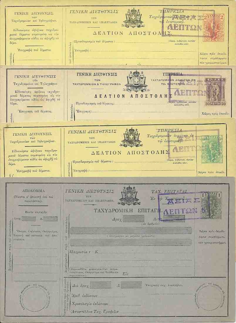 Lot1323 - ΕΛΛΑΔΑ 3 διαφορετικά Δελτία Αποστολής και μία Ταχυδρομική επιταγή με Ιπτάμενο Ερμή μη χρησιμοποιημένη