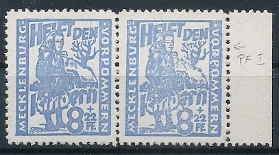 Lot1716 - ΓΕΡΜΑΝΙΑ Σοβιετική Συμμαχική Ζώνη 1945, Μαγδεμβούργο ζευγάρι με τρία λάθη πλάκας, κατάλογος Michel No 27a **/bl2