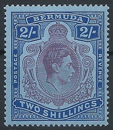 Lot1868 - ΜΕΓΑΛΗ ΒΡΕΤΑΝΙΑ ΑΠΟΙΚΙΕΣ, Βermouda 1938, 2 shillings, οδόντωση 14, λάθη πλάκας σπάσιμο στο πηγούνι, κατάλογος Gibbons : No 116df *