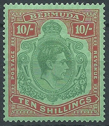Lot1870 - ΜΕΓΑΛΗ ΒΡΕΤΑΝΙΑ ΑΠΟΙΚΙΕΣ, Βermouda 1938, 10 shillings, οδόντωση 14, κατάλογος Gibbons : No119a *