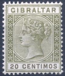 Lot1875 - ΜΕΓΑΛΗ ΒΡΕΤΑΝΙΑ ΑΠΟΙΚΙΕΣ, Γιβραλτάρ 1889, 20 CENTIMOS με σφάλμα στο γράμμα C, κατάλογος Gibbons : No 25a *