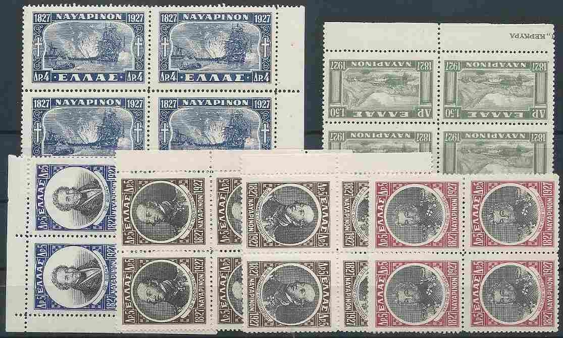 Lot0603 - ΕΛΛΑΔΑ 1827, Ναυαρίνον (Battle of Navarino), ολόκληρη σειρά, τετράδες **/bl4
