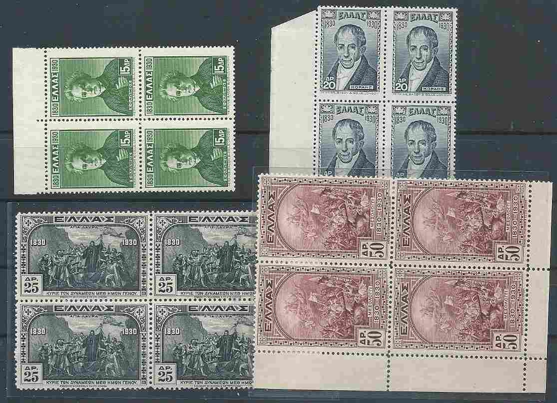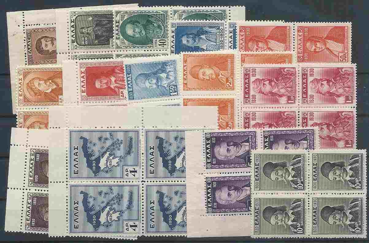 Lot0613 - ΕΛΛΑΔΑ 1930 Ανεξαρτησία, πλήρης σειρά, Τετράδες **/bl4