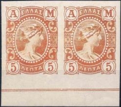 Lot0520 - ΕΛΛΑΔΑ 1902 έκδοση ΑΜ Μεταλλικής Αξίας 5λ ζεύγος χωρίς οδόντωση **/bl2