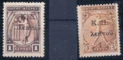 Lot0563 - ΕΛΛΑΔΑ 1917 'ΚΠ με νέα Αξία' επί Ολυμπιακών Αγώνων 1906 ΔΕΝ ΚΥΚΛΟΦΟΡΗΣΑΝ 1λ/1λ, 1λ/3λ *