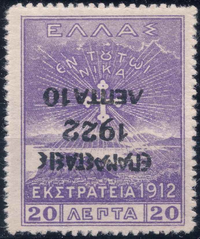 Lot0580 - ΕΛΛΑΔΑ 1923 'Επανάστασις 1922' 10λ/20λ με ανεστραμμένη επισήμανση **