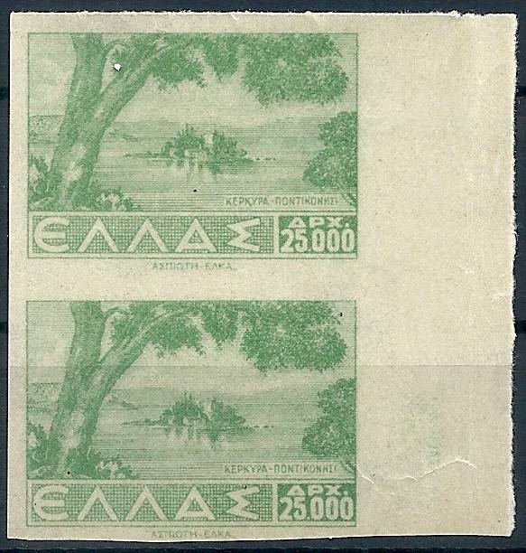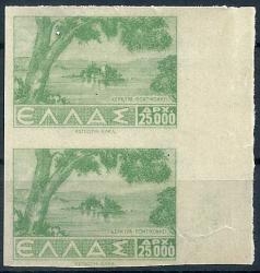 Lot0654 - ΕΛΛΑΔΑ 1942-1944, έκδοση για τα Ελληνικά Τοπία 25000 δρχ εκτύπωση μόνο στην όψη της γόμας σε ζεύγος χωρίς οδόντωση **/bl2