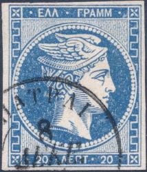 Lot0194 - ΕΛΛΑΔΑ 1875-1876 20λ Μπλε και Άτονο μπλε (Blue to Dull Blue) με Ανισόπεδους ΑΕ και λέπτυνση, συνοδεύεται με πιστοποιητικό γνησιότητας Κυριάκος Παπαθανασίου ☉
