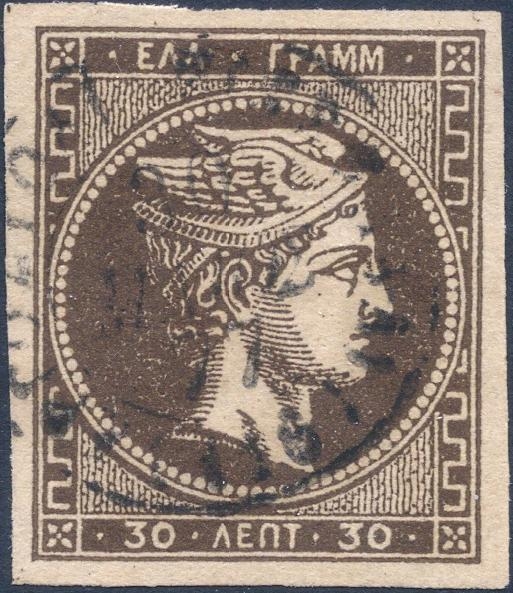 Lot0217 - ΕΛΛΑΔΑ 1876-1877 30λ Πολύ βαθύ καφέ σε λεπτό χαρτί (Sepia on thin paper) ☉