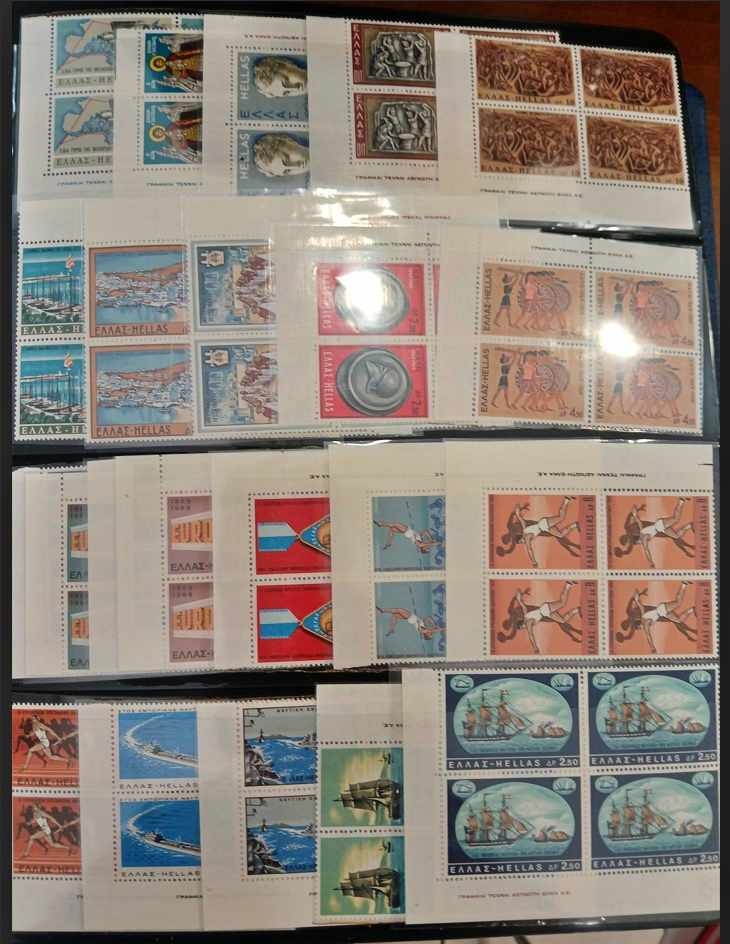 Lot2608 - Συλλογή Ελλάδας σε 8 άλμπουμ διαφόρων περιόδων μετά το 1958 σε τετράδες και μονές σειρές, όχι πλήρης συλλογή **/☉