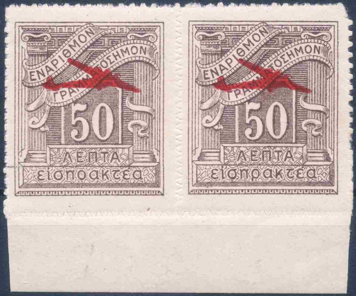 Lot0807 - ΕΛΛΑΔΑ 1938-1942 'Αεροπλανάκια' 50δρχ ζεύγος με λάθος επιγραφή 'Εισπρακτέα' Δεν αναφέρεται καθόλου στον κατάλογο Ερμή **/bl2