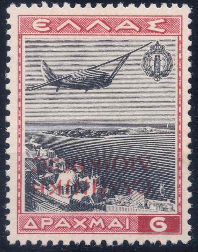 Lot0817 - ΕΛΛΑΔΑ 1941 'Έκδοση ΕΟΝ Β - Αεροπορικά ΕΛΛΗΝΙΚΗ ΔΙΟΙΚΗΣΙΣ 6δρχ με ανεστραμμένη επισήμανση **