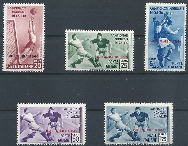Lot0876 - ΕΛΛΑΔΑ 1934, Νέες Χώρες 'Παγκόσμιο Πρωτάθλημα Ποδοσφαίρου' με επισήμανση 'ISOLE ITALIANE DELL' EGEO' 20c-5 L +2,50 L *