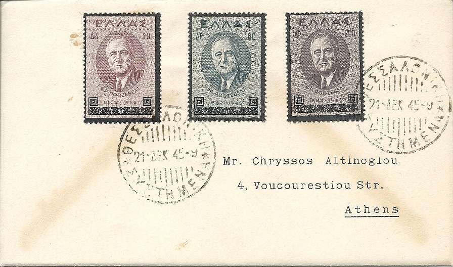 Lot1009 - ΕΛΛΑΔΑ 1945, ΦΠΗΚ πένθιμη έκδοση για τον θάνατο του Φραγκλίνου Ρούσβελτ ✉