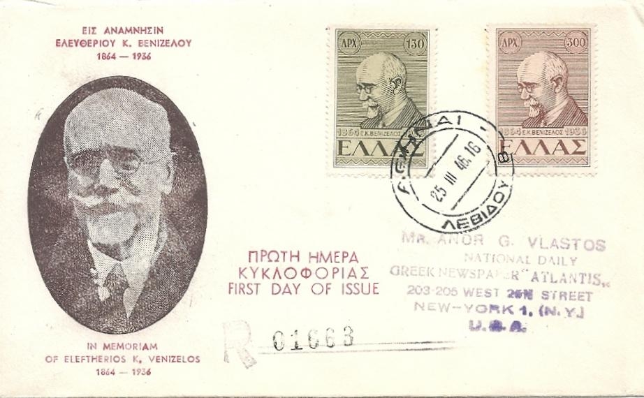 Lot1011 - ΕΛΛΑΔΑ 1946 ΦΠΗΚ(Α) αναμνηστική έκδοση για την 10η επέτειο από τον θάνατο του Ελευθερίου Βενιζέλου ✉