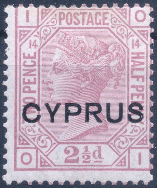 Lot1602 - ΚΥΠΡΟΣ 1880 Γραμματόσημο της Μεγάλης Βρετανίας με επισήμανση Cyprus 2 1/2d Plate 14 *