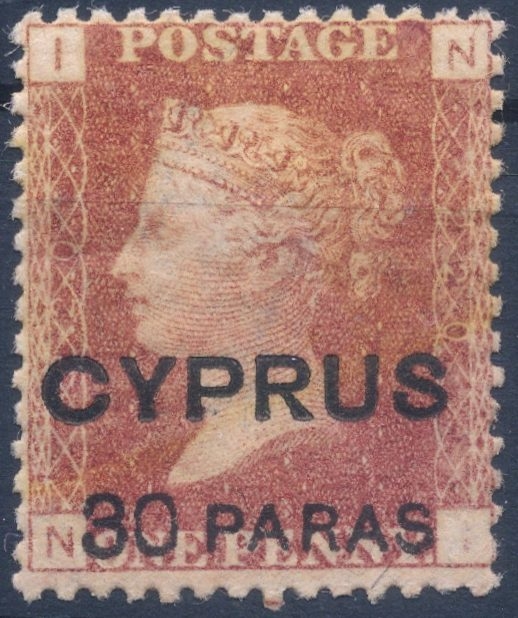 Lot1609 - ΚΥΠΡΟΣ 1881 Γραμματόσημο της Κύπρου με επισήμανση τύπου 4 30 Paras/1d Plate 220 *