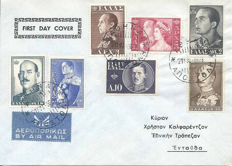 Lot1028 - ΕΛΛΑΔΑ 1956 ΦΠΗΚ (Α) τακτική έκδοση Βασιλέων της Ελλάδος - σειρά Α' ✉