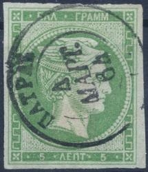 Lot0029 - ΕΛΛΑΔΑ 1861-1862 5 λεπτά πράσινο έως κιτρινοπράσινο (green to yellow green) με λέπτυνση επισκευασμένο ☉