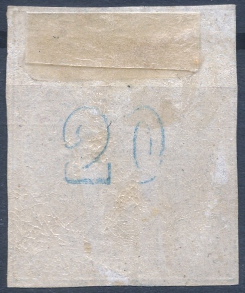 Lot0112 - ΕΛΛΑΔΑ 1862-1867 20 λεπτά μπλέ ουρανί (sky blue) με γόμμα, θέση πλάκας 148, συνοδεύεται με πιστοποιητικό Παπαθανασίου *
