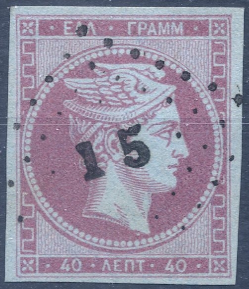 Lot0138 - ΕΛΛΑΔΑ 1862-1867 40 λεπτά γκρι-μωβ σε μπλε (grey mauve on blue) ☉