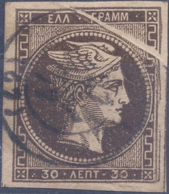 Lot0253 - ΕΛΛΑΔΑ 1876-1877 30 λεπτά Αθηναϊκή έκδοση νέων αξιών ελαιοκαστανόχρωμο (olive-brown shades) με ΕΚΤΥΠΩΣΗ ΠΑΝΩ ΣΤΗΝ ΤΣΑΚΙΣΗ ΠΟΛΥ ΣΠΑΝΙΟ ☉