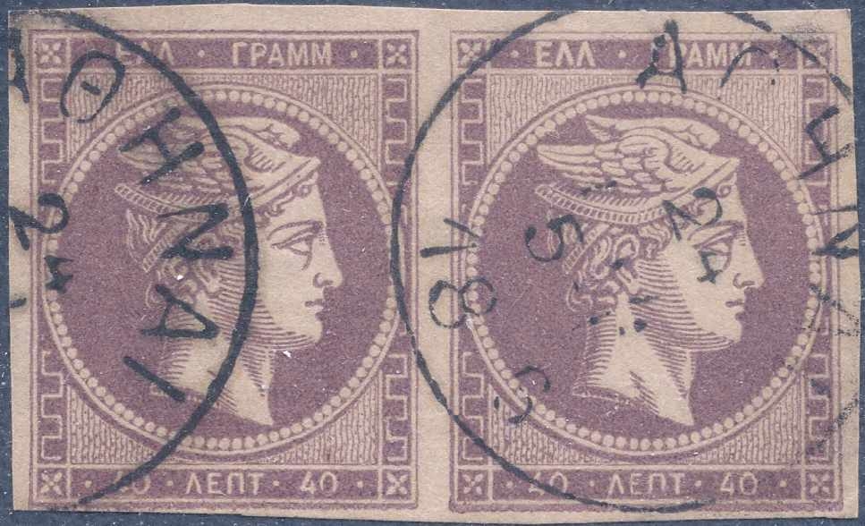 Lot0354 - ΕΛΛΑΔΑ 1880-1886 40 λεπτά βιολέ καφέ ζωηρό (bright violet brown) με δύο σφάλματα πλάκας ☉/bl2
