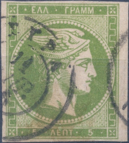 Lot0269 - ΕΛΛΑΔΑ 1875-1880 5 λεπτά κιτρινοπράσινο (yellow green) ☉