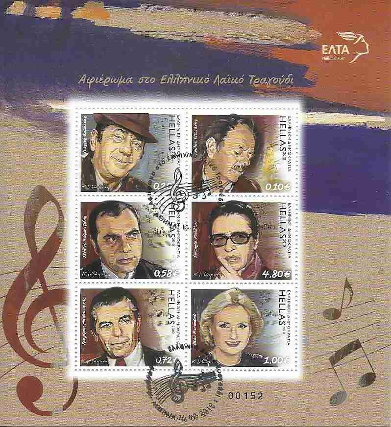 Lot0741 - ΕΛΛΑΔΑ 2010, αναμνηστική σειρά ΑΦΙΕΡΩΜΑ ΣΤΟ ΕΛΛΗΝΙΚΟ ΛΑΪΚΟ ΤΡΑΓΟΥΔΙ, φυλλαράκι 1ης σειράς με ΠΗΚ 16-08-2010 ☉