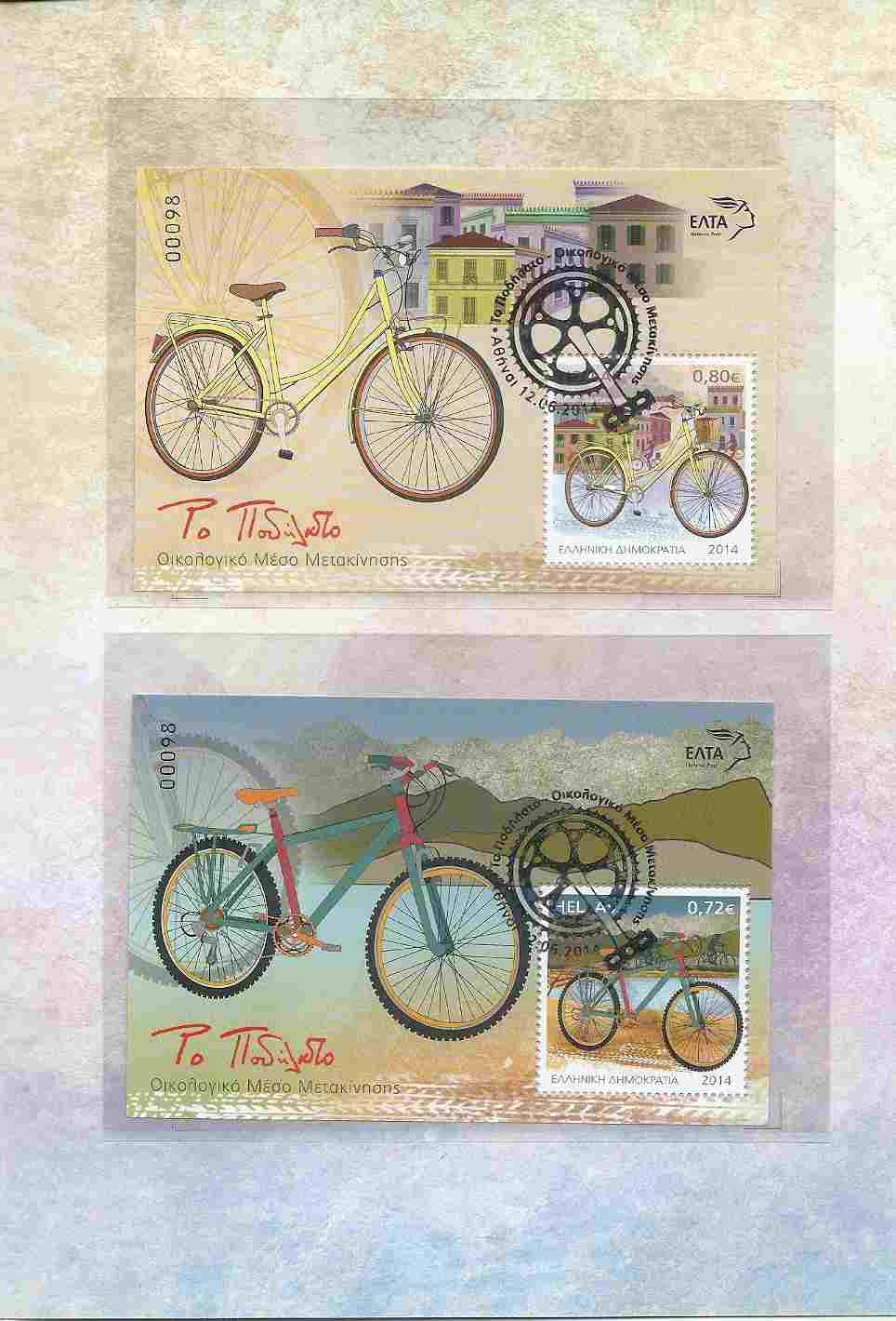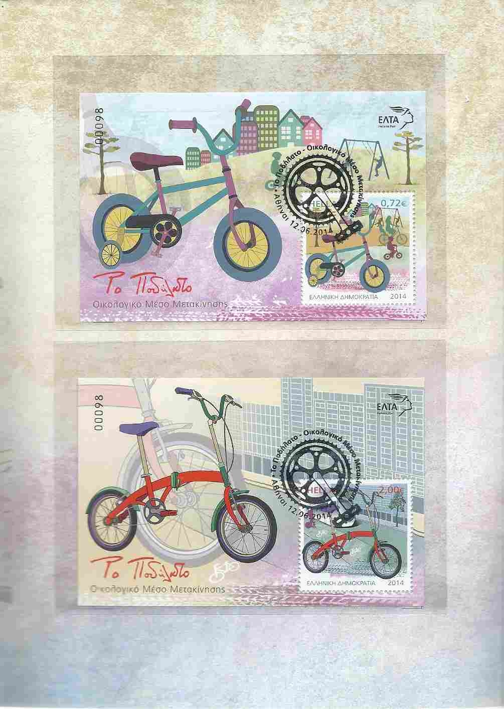 Lot0765 - ΕΛΛΑΔΑ 2013, αναμνηστική σειρά ΤΟ ΠΟΔΗΛΑΤΟ οικολογικό μέτρο μετακίνησης, σετ 4 αριθμημένων φεγιέ στην επίσημη συσκευασία του ταχυδρομείου με ΠΗΚ ☉