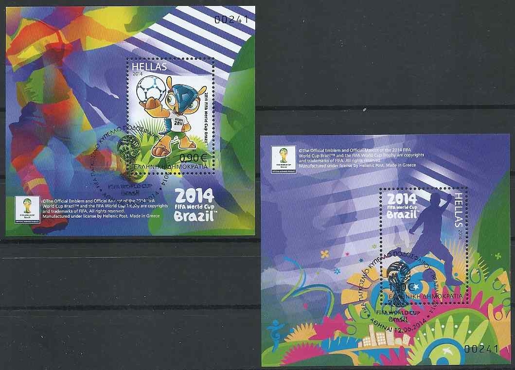 Lot0767 - ΕΛΛΑΔΑ 2014, αναμνηστική σειρά ΠΑΓΚΟΣΜΙΟ ΚΥΠΕΛΛΟ ΠΟΔΟΣΦΑΙΡΟΥ ΒΡΑΖΙΛΙΑΣ, σετ 2 αριθμημένων φεγιέ με ΠΗΚ ☉