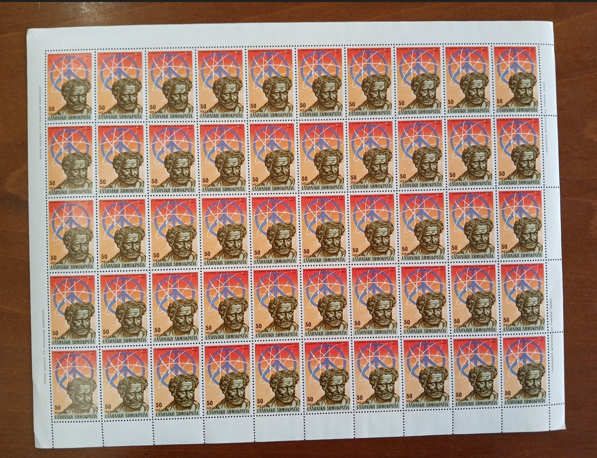 Lot1016 - ΕΛΛΑΔΑ 1983, πλήρης σειρά σε φύλλο των 50 γραμματοσήμων για το 1ο ΔΙΕΘΝΕΣ ΣΥΝΕΔΡΙΟ ΓΙΑ ΤΟΝ ΔΗΜΟΚΡΙΤΟ ΚΑΙ ΤΟ ΕΡΓΟ ΤΟΥ **
