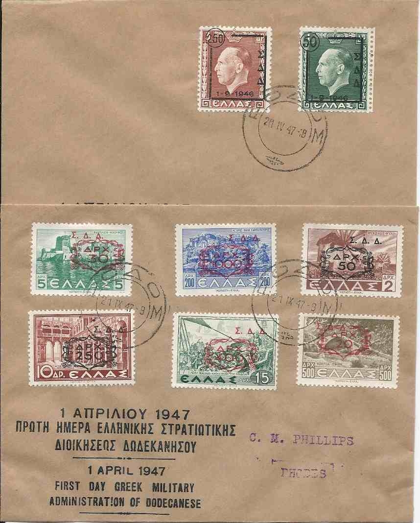 Lot1045 - ΕΛΛΑΔΑ ΔΩΔΕΚΑΝΗΣΑ 1947 ΦΠΗΚ πλήρες σετ 3 φακέλλων από ΠΡΩΤΗ ΗΜΕΡΑ ΕΛΛΗΝΙΚΗΣ ΣΤΡΑΤΙΩΤΙΚΗΣ ΔΙΟΙΚΗΣΕΩΣ ΔΩΔΕΚΑΝΗΣΟΥ ✉