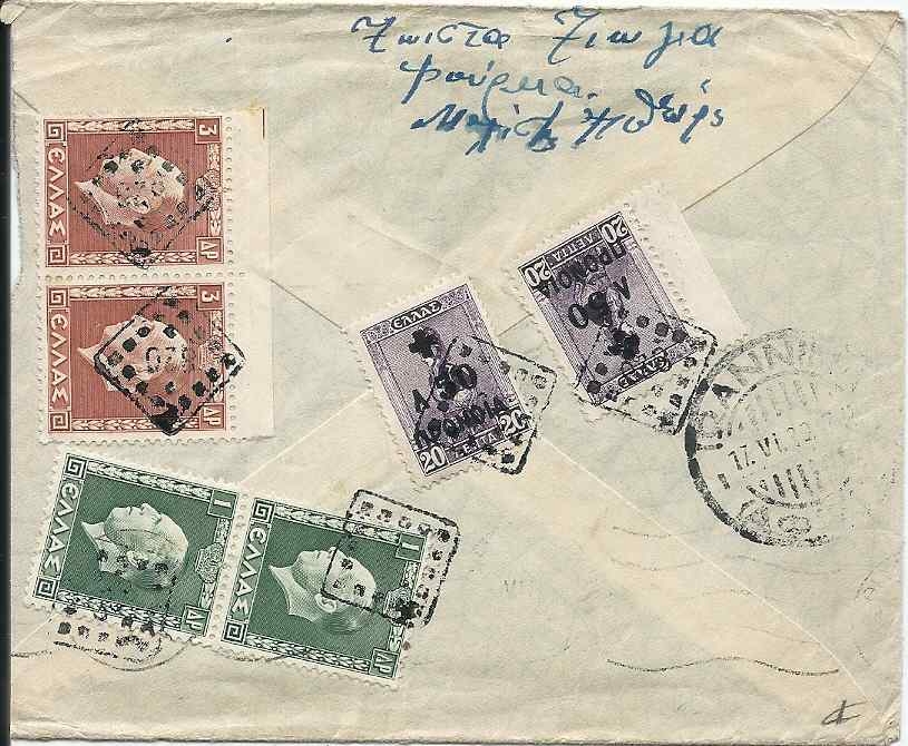 Lot1301 - ΕΛΛΑΔΑ 1939 επιστολή, Μυλίστρα Ηπείρου από Φούρκα Ιωάννινα προς USA με στικτή σφραγίδα Νο 820 και σφραγίδα ελέγχου συναλλάγματος ΙΩΑΝΝΙΝΩΝ