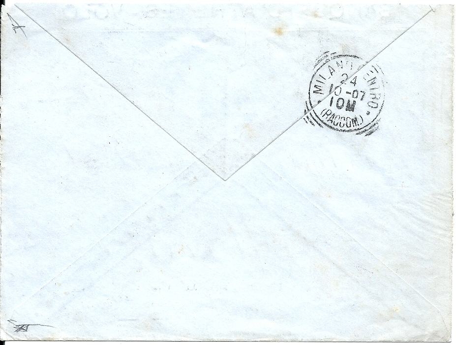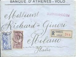 Lot1313 - ΕΛΛΑΔΑ 1906 συστημένη επιστολή από την ΤΡΑΠΕΖΑ ΑΘΗΝΩΝ, στον Βόλο, προ το ΜΙΛΑΝΟ, με γραμματόσημα 20λ+25λ των Ολυμπιακών Αγώνων 1906