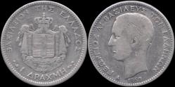 Lot2412 - ΕΛΛΑΔΑ 1868-1873-1874-1883 Βασιλεύς Γεώργιος Α', λαχνός, 1 δραχμή , 4 κομμάτια, αριθμός καταλόγου Hellas : ----