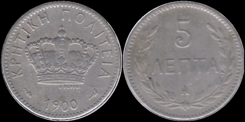 Lot2432 - ΕΛΛΑΔΑ Κρητική Πολιτεία, λαχνός, 5λεπτά, 10 λεπτά, 20 λεπτά, αριθμός καταλόγου Hellas : ----