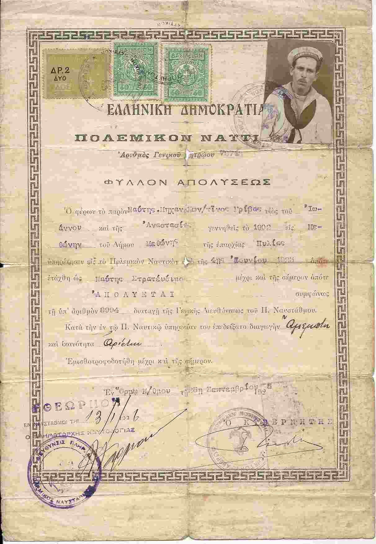 Lot2810 - ΕΛΛΑΔΑ 1926, ντοκουμέντο Θωρηκτού ΑΒΕΡΩΦ με υπογραφή του Κυβερνήτη