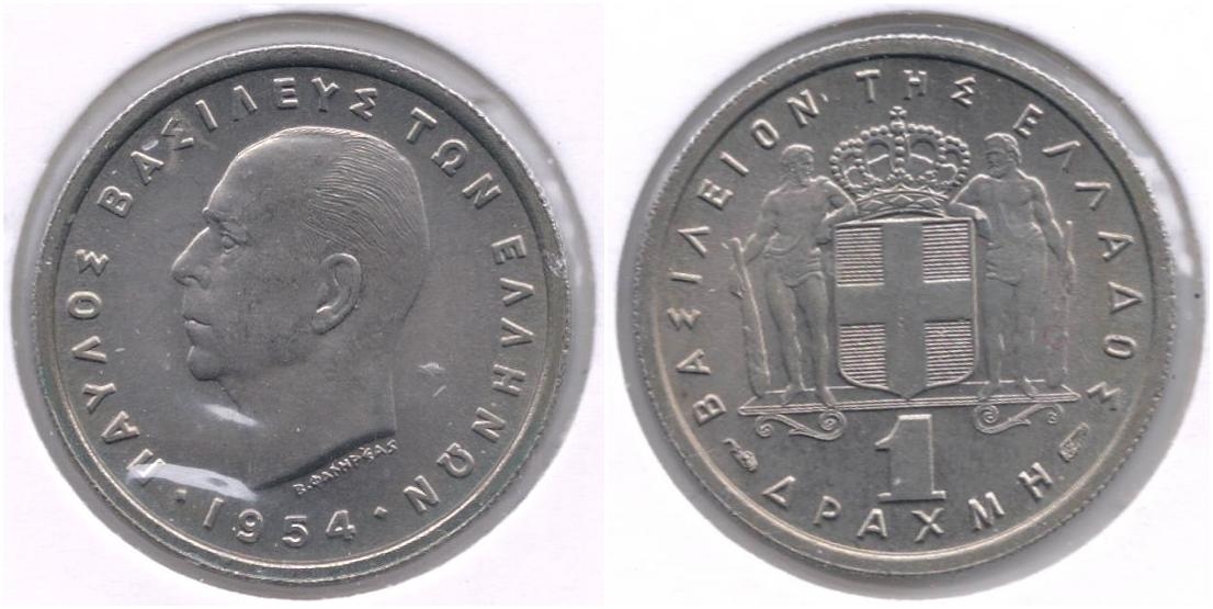 Lot2438 - ΕΛΛΑΔΑ 1954 Βασιλεύς Παύλος 1 δραχμή, αριθμός καταλόγου Hellas : 193