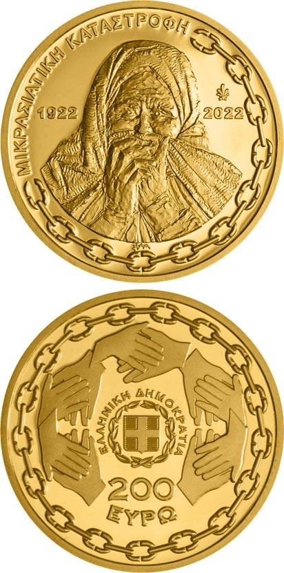 Lot2531 - ΕΛΛΑΔΑ 2022, Χρυσό συλλεκτικό νόμισμα 200€ 100 Χρόνια από την Μικρασιατική καταστροφή, στην επίσημη συσκευασία, με πιστοποιητικό γνησιότητας.