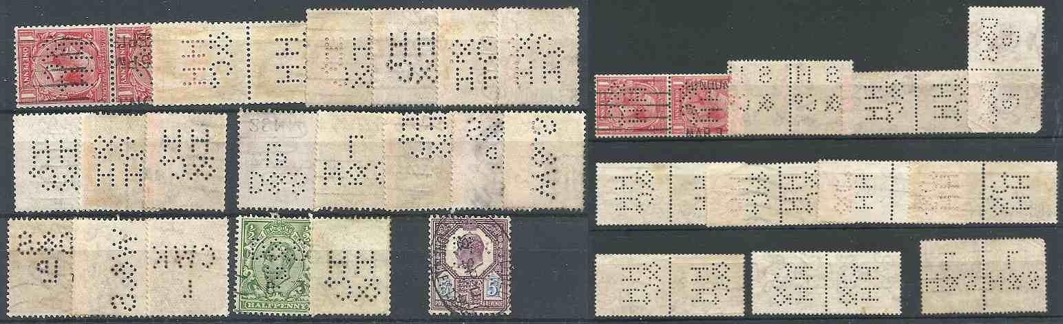 Lot1929 - Λαχνός με 44 Αγγλικά διάτρητα γραμματόσημα (perfins), κατάλογος Michel No ----