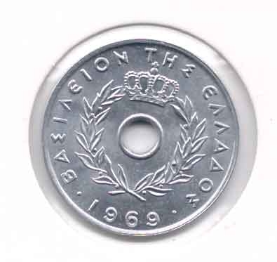 Lot2424- Βασιλεύς Κωνσταντίνος Β' 20 λεπτά 1969.