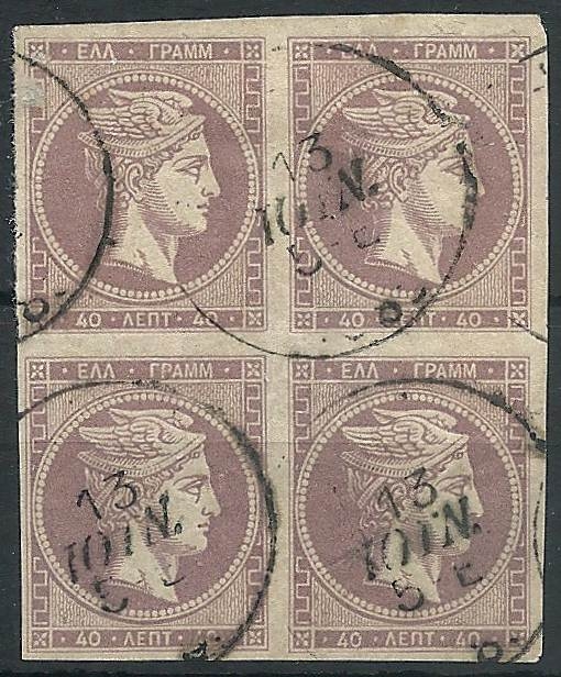 Lot0289 - ΕΛΛΑΔΑ 1880-1886 40 λεπτά βιολέ καφέ άτονο (dull violet brown) ☉/bl4