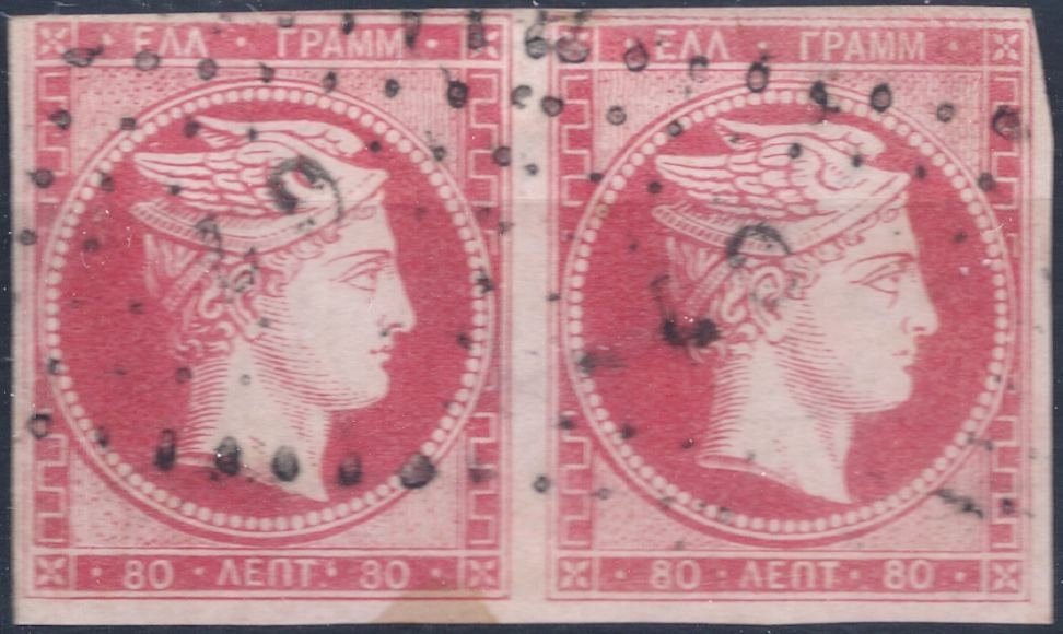 Lot0018 - ΕΛΛΑΔΑ 1861 80 λεπτά ροδοκαρμινόχρωμο, ζευγάρι (rose carmin) ☉/bl2