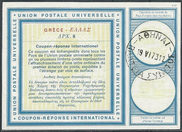 Lot2853- Ελλάδα , Διεθνές ένσημον απαντήσεως 6 δρχ