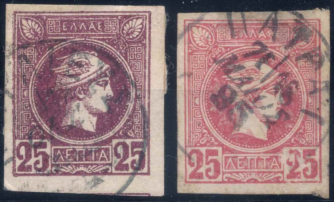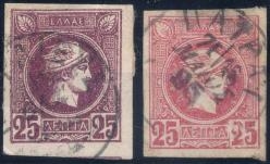 Lot0316 - ΕΛΛΑΔΑ 1890-1896 25 λεπτά κόκκινο (χωρίς το μπλε χρώμα) ☉
