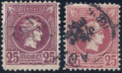 Lot0323 - ΕΛΛΑΔΑ 1890-1896 25 λεπτά κόκκινο (χωρίς το μπλε χρώμα) με οδόντωση ☉
