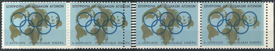 Lot2020 - Τετράδα βινιετών 1969 της Ολυμπιακής Ημέρας, 6 Απριλίου, oι δύο είναι με σφάλμα διάτρησης
