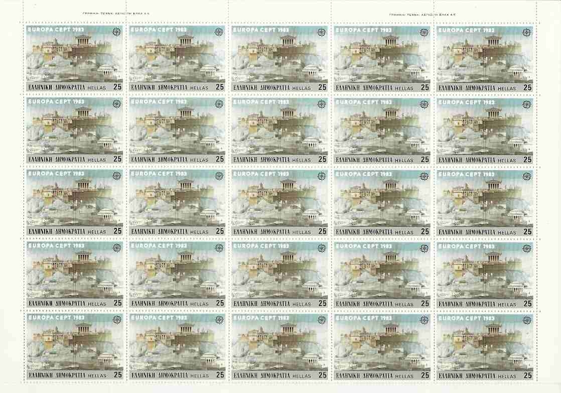Lot1002 - ΕΛΛΑΔΑ 1983 έκδοση για την Ευρωπαϊκή Ένωση (CEPT), Μεγάλα έργα της ανθρωπότητας, Πλήρης σειρά σε φύλλα των 50 σειρών **